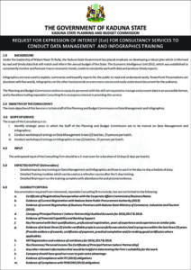 Home | Tenders and Contracts | Kaduna State Government Request for Expression of Interest (EOI) For Consultancy Services To Conduct Data Management and Infographics Training
