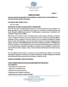 IOM Nigeria: Consultancy Contract for Specialized Training of Nigeria Immigration Services Technical Officers on Information & Communication Technology