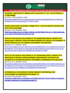 Home | Nigeria News | Download PDF of 50 NGO/Governments Tenders and contracts information with January 2022 deadlines