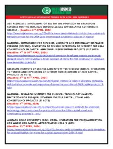 Get List of Governments/NGO Tenders in Nigeria with April 2024 Deadlines in PDF