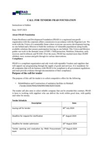 Home | Tenders and Contracts | Future Resilience And Development Foundation (FRAD)- Invitation To Tender For Rehabilitation And Construction Of Sanitation Facilities In Shinkafi