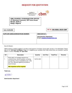 Christoffel Blinden Mission (CBM)- Request For Quotation For Porta Cabin Roof Leakage Maintenance
