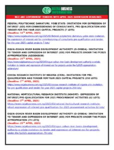 Download PDF Of Government & NGO Latest Tenders In Nigeria – April 2025 Deadlines